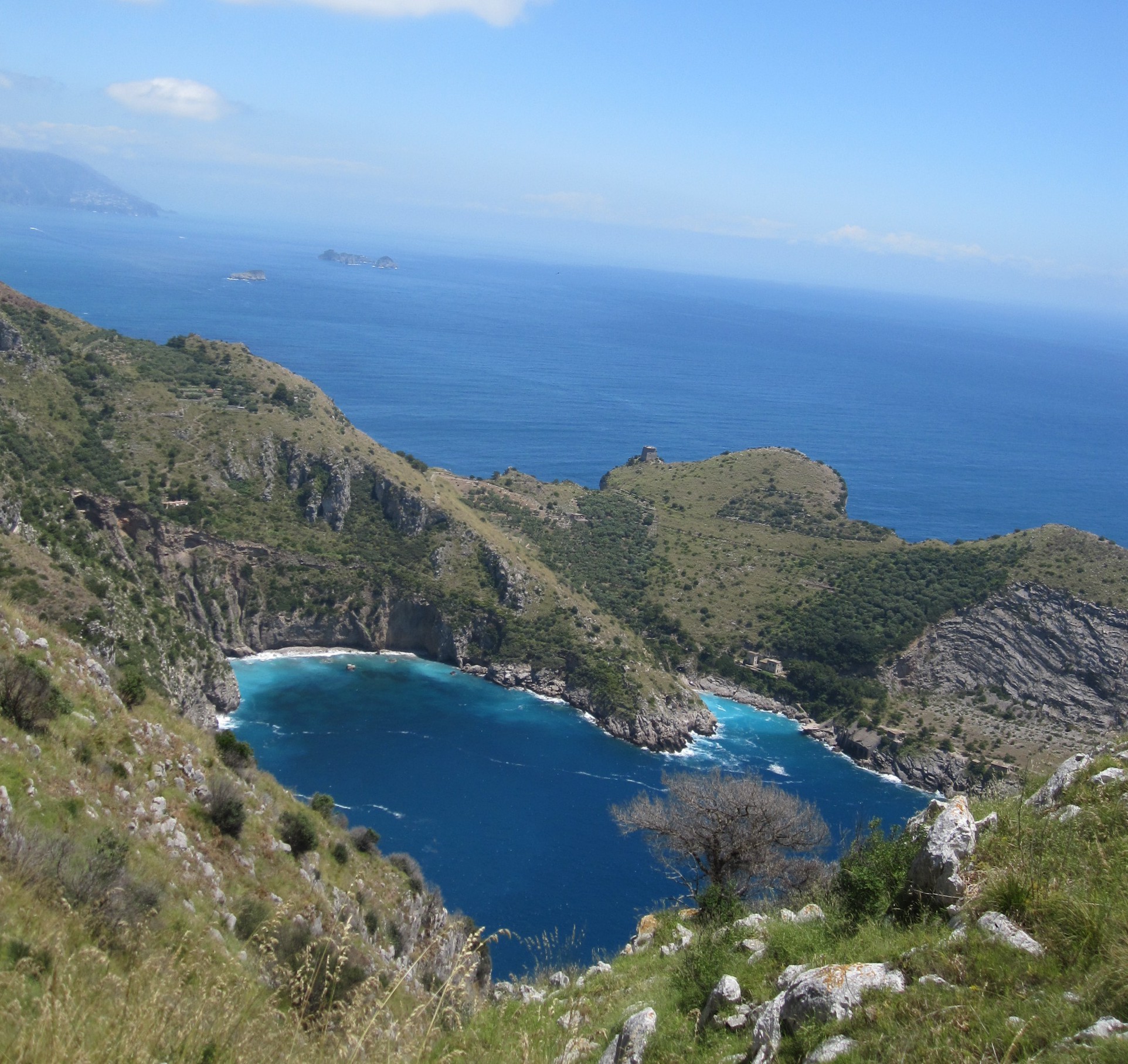 Il percorso parte da Nerano, piccolo borgo di pescatori. L’imbocco del sentiero si trova nei pressi della piazetta del paese. Quando la natura dà spazio alla macchia mediterranea, la vista si apre su Capri, Punta Campaella, il profilo della Costiera Amalfitana e gli isolotti dei Galli, per poi scendere fino alla piccola spiaggia della baia di leranto: un luogo dove immergersi nelle acque del mare con lo sfondo dei Faraglioni di Capri